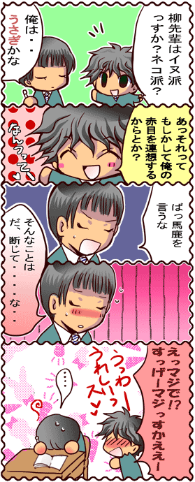 × [PR]上記の広告は3ヶ月以上新規記事投稿のないブログに表示されています。新しい記事を書く事で広告が消えます。 L・O・V・E ラブリーこはるうう 普通に女装でスミマセン かわいい小春もかっこいい小春もなんでもいけますが あからさまにユウジLOVEな小春は無理かもしれません… 実はユウジよりも愛が深いかもしれないけど決してそれを周囲に見せない漢小春を妄想してきゅんきゅんします。かっこいいいい 小春登場時から身内には「小春は俺の旦那様」と言い続けているほど実はかっこいい小春にぞっこんです。三歩下がってついてゆきたい。 ** ブンたん誕をスルーしてしまいました。 漫画では動かしやすい人第一位です。本当に有難うございますいつも画面が華やかになります描きやすいです描いてて楽しいです。 おめでとうvvv ** バトン受け取って下さった皆さん有難うございました!わーいv ** 何をやりたかったかご理解いただけるかと(笑 ばーかばーかwとののしって下さい(笑 ばかでスミマセン!満足。 縦読みでした(笑 ばかめ! PR @ゲームのあれ。 死神柳さんと吸血鬼赤也をいまだによく妄想します。 素敵設定にオラわっくわくがとまらないだ…私が考えると真柳赤になっちゃいますが あれっ ** 先日泊まりに来てくれたお友達はオタクだけど そんなにテニス詳しくないんです。あとちょっと天然で。 部屋に入るなり 「わーチョコのゲームなんてあるんだvv」 え…? (゚Д゚;;) ホントだチョコのゲームだ いや、世界一のパティシエになってチョコマスターになるとか そういうゲームじゃないんだよ…と説明したら残念がってました。 目からうろこでした。 ある意味、某TAKEMOTO演じるチョコキャラがゲームになったら3本は買いますが(笑 ** えーと携帯のメール等お返事はすぐするタイプなので もしメールがないなーと思われましたらご連絡下さいませ; 携帯メールで事故とかあるのかなぁ?? |