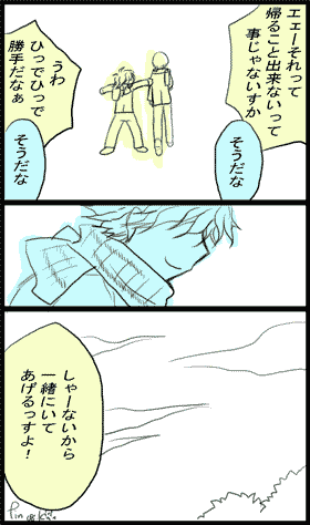 と言っても…数時間前に慌てて作った突貫工事なので; おかしな部分が多々ありましたらすみません! 初めにやログの整理など後でやります…!わあ。 ** 星矢のエチャをやっています。 よろしかったら参加してやって下さい~ ** エチャ終了しました!来て下さった皆さん本当に有難うございました! ひしっ またログ編集しますねv **こちらは夜ねこぼう<ヤネコボウ>のきりかが管理するブログです** ・絵や漫画の二次創作などを好きなように描いてゆきます ・版権元などには一切関係がありません ・あくまで趣味のお絵描きブログでカオスです。 ・女性向け・腐向けですが男性向け絵も描いたりします ・検索除けしてます 非検索除けサイト様からのリンクはご遠慮下さい **取り扱いもの** ■テニス 立海:柳最愛・真柳・赤柳・柳受全般・立海全員大好き 四天宝寺:小春最愛・ユウコハ・大阪弁に四苦八苦(笑 氷帝:跡部最愛・樺跡・滝さん美しい・ぴよしかわいい ■セイヤ 冥界愛・ファラオ・ミーアイミー・ミューギガ・ルネファラオ・双子座(特に弟) ■APH 独・埃受・加受がとにかく大好き 普もいじめ愛 これから増えるかと ■その他たくさん 漫画は根暗なものか阿呆なギャグのどちらかです。 ネコミミ崇拝なので普通に描いたりします。 女体大好きなのでたまにおっぱい!と叫びます とにかくカオスです。 のんびり描ける時に描けるものを描いてゆきますので まったりお付き合いいただけると嬉しいです □□只今オフラインは休止中です□□ 御用の方はプロフィール内の拍手かメールにてご連絡下さい 原稿依頼等は大歓迎です(^^) お返事・バトン回答などは1~2ヶ月ほどで削除してゆきます 09・03・01 きりか拝 |
